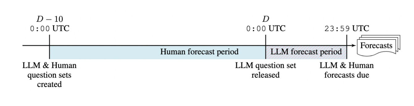 D - 10: Forecasts are sampled from the ForecastBench question bank.